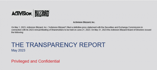 动视暴雪董事会在报告的介绍中赞扬了公司的努力,说道:“作为一家公司,我们致力于透明度——不仅仅是一个抽象的概念,而是因为它使我们的利益相关者能够清楚地了解我们的价值观以及我们如何坚持他们来维护我们的文化。”