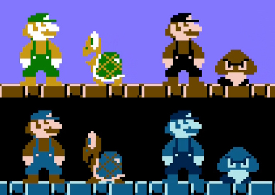 ·估计没有老玩家注意到这些细节的缘由,那就是在马里奥吃到无敌星星后,位于地上关卡与地下关卡的不同色调设计。地上配色与地下配色设计都略有不同,在紧张的跑酷阶段估计没有玩家站住了仔细观察这些细节。