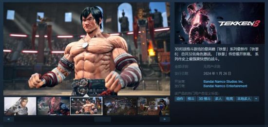 今日(8月23日),3D对战格斗游戏《铁拳8》宣布开启预购,游戏本体Steam国区售价348元,数字豪华版498元,数字终极版548元,游戏支持简体中文,预计于2024年1月26日正式发售,感兴趣的玩家可以点击此处进入商店页面。