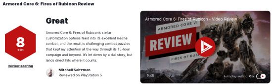 《装甲核心6》IGN评8分:机甲战优秀 剧情平淡乏味
