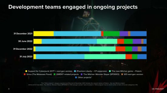 在当地时间周三举行的季度财报上,该公司更新了参与当前项目不同团队的人员规模。据CEO Adam Kicinski,《赛博朋克2077:往日之影》开发团队人员最多。