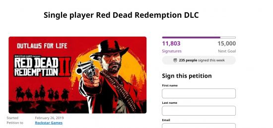 有鉴于此,粉丝们呼吁R星能为《荒野大镖客2》开发一个单人DLC,而且是付费,让R星有钱赚。目前已经获得11798个签名。