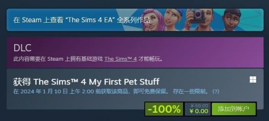 Steam喜加一:《模拟人生4》DLC“我的第一只宠物组合”免费领