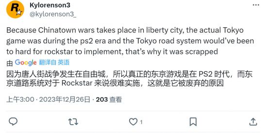 网友对R星开发《GTA:血战唐人街》而放弃《GTA:东京》的解释