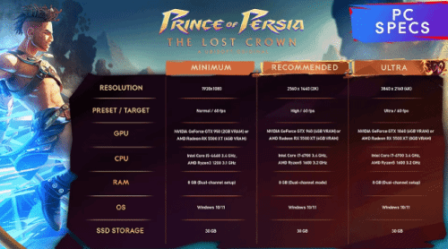《波斯王子:失落王冠》PC配置公布 4K仅需1060显卡