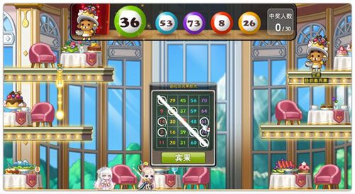 活动期间每个指定整点30分会收到邀请函(指定整点为:2/5/8/11/14/17/20/23),参加宾果活动,在宾果板上找到甘迪所报的号码并用鼠标点击,连成1行数字后点击宾果按钮记录排名,回合结束后根据排名获得甜品点数。
