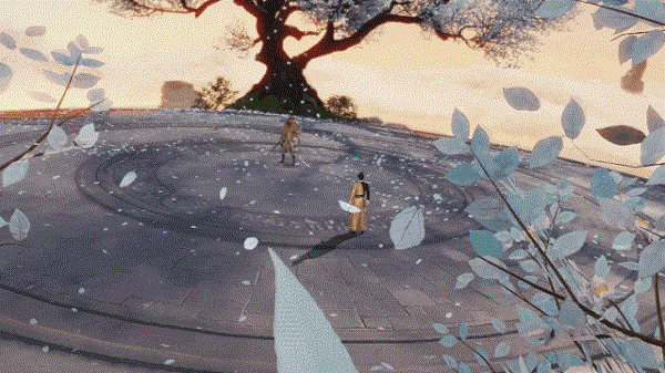 纷繁落花中,相对而立,光影闪烁间,针锋相对。挽剑花、刺白刃,迅捷的身影如利刃出鞘,剑气穿破长空、猎猎作响,势如破竹,直逼命门!