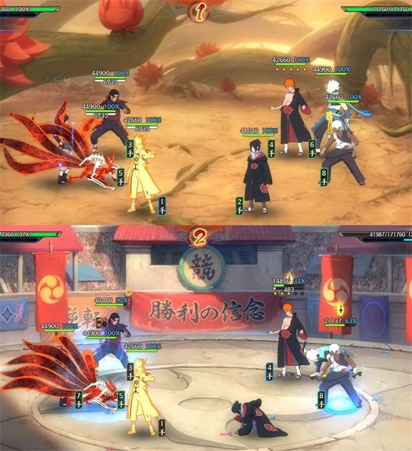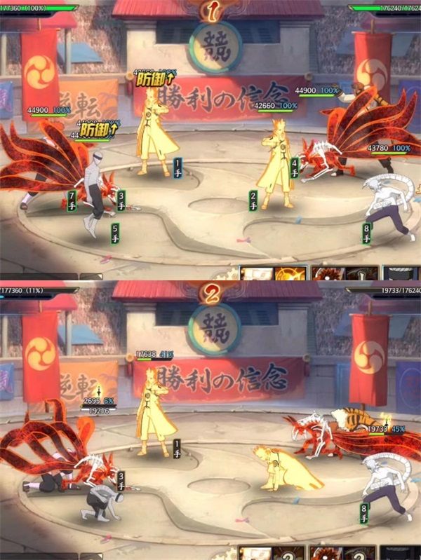 2、我方鸣人奥义击败对方水门;