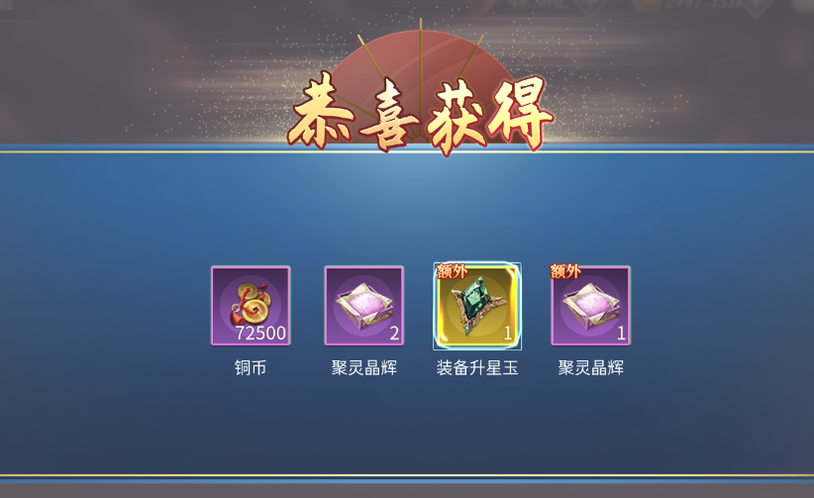 筛选符合条件的器灵,完成不同时长、不同等级的派遣任务。在派遣任务中,玩家可以收获到的资源多种多样,小到铜币,大到器灵升星必不可少的升星玉,日积月累的点滴回报终将凝聚为可观的收益。