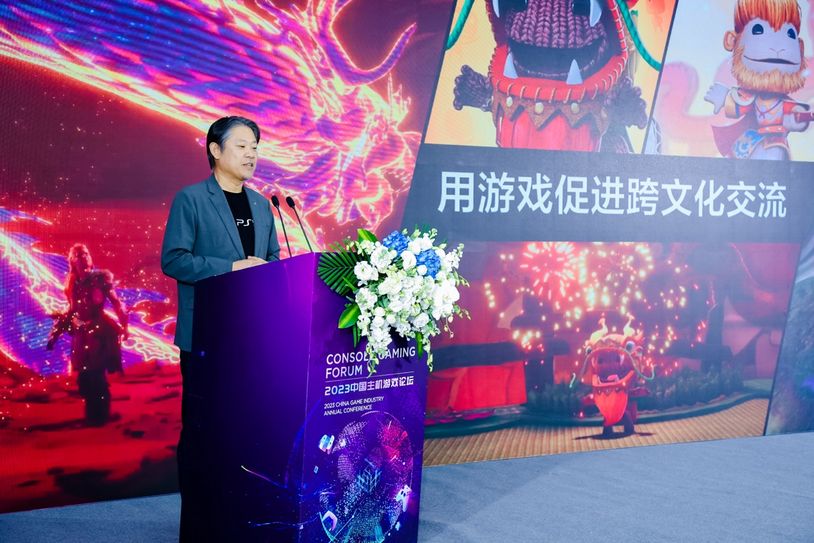索尼互动娱乐(上海)有限公司董事长兼总裁江口达雄在2023中国主机游戏论坛进行主题分享