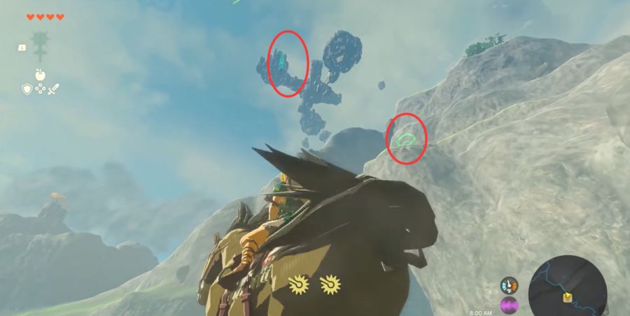 有了台词上的引导还不够,《王国之泪》在地图的排布上相比较《旷野之息》而言更加规律化。试图靠一些对应关系让3个地图图层联系的更加紧密。具体的对应方式有大小之分,小的关系主要靠资源的互相关联让玩家主动的上天入地去探索更多区域。比方说,地底世界有瘴气伤害与黑暗的环境需要点亮,而消除瘴气伤害的向阳花在空岛,而照亮环境的花朵素材也主要集中在海拉鲁大陆新增的各种洞穴之中,再比如空岛与陆地上提供了很多藏宝图,不少藏宝点就在地下。