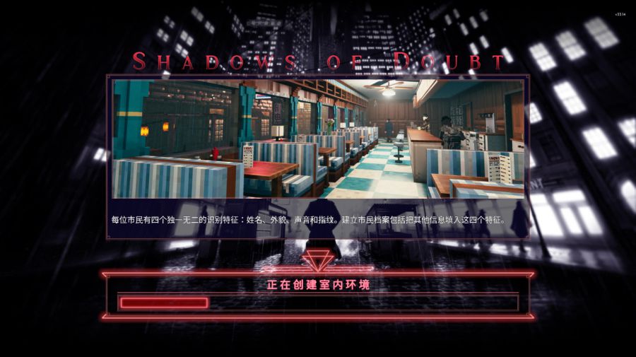 《Shadow of Doubt》开发团队创始人Cole Jeffries说道:“市面上有一堆侦探游戏,但很多都是关于侦探的故事,而不是让你成为侦探……我想给玩家更多的代理权。”《Shadow of Doubt》是这些推理概念的最新产物,它同样实现了把搜集线索、推理证明的过程全权交到玩家手中,从关键物品到人员信息,玩家可以自由地检查或分析这些线索,从中推断出破解案件所需的信息网络。玩家在游戏内,也切实存在收集线索——分析推理——做出行动的游戏行为。建立在程序生成技术之上的街区模拟器如何解释《Shadow of Doubt》推理玩法的设计逻辑?设计一个街区,让上百个NPC在里面工作、生活,制造一起案件,让玩家根据有限的线索,在数百人的街区里找到罪犯。侦探的扮演感,或推理之所以能起作用,在于游戏设定了一套规则:每个NPC都有数个唯一的标识,名字、指纹、相貌、声音,有缩小搜索范围的信息,住所、鞋码、工作场所、人际关系,罪犯作案后不会更改行动逻辑。