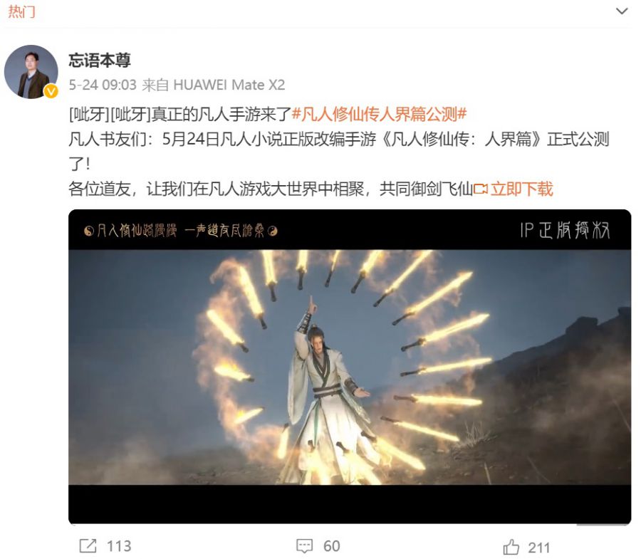 与此同时,《凡人修仙传:人界篇》也聚焦#这游戏在修一种很新的仙#这一话题,邀请到了@中二探长 @骨灰级玩家陈二狗等游戏垂类KOL试玩测评,由他们以粉丝喜闻乐见的方式解读游戏创新点,引导PGC创作,借此吸引到了大量游戏兴趣用户的关注。