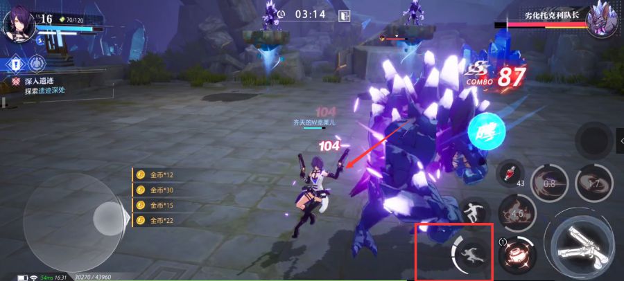 ③ 锁定键与大范围的攻击技能作为一款3D环境的动作游戏,《晶核》相比较一些横版过关类的前辈,敌人的攻击方向更复杂,再加上手游调整方向的双摇杆操作一般都不会很舒服,所以就需要一些手段调整方位感,比如一键锁定敌人这种机制,这个《晶核》里也有。