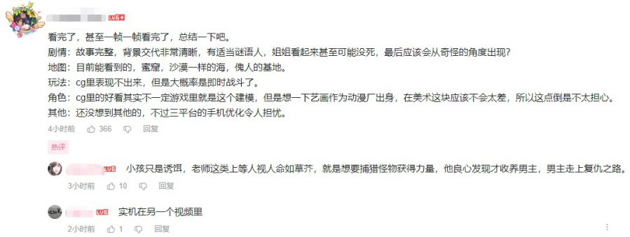 实机实机演示环节,《凡应》展示了一场完整的BOSS战,其中战斗前后的过场剧情不仅有着较高的画面品质,篇幅不短的剧情时长更是与CG形成了呼应,进一步坐实了该作“强叙事番游”形态的可能性。