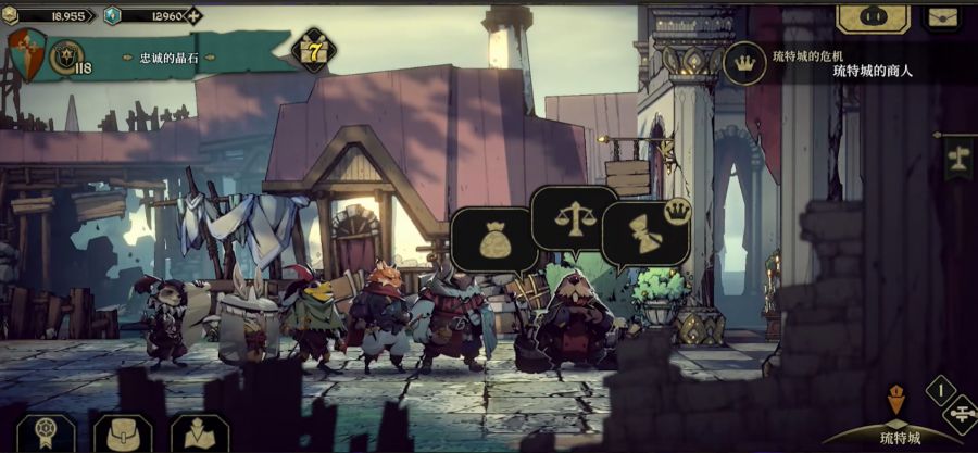 同时,美术风格、san值、站位设计、明亮度与死亡的一些玩法设计都与游戏的背景文化设计密切相关。若是将玩法单独设计拆解,效果也很有可能大打折扣,似是而非。那么,《安妮姆的无尽旅途》又是怎么做的呢?《安妮姆的无尽旅途》的轻量化做法游戏一改跑图地图区域化+克苏鲁文化的设定加持,转向为furry风角色+大地图攻略的设定,”据主创所说,游戏安妮姆的意思也就是动物“animal"的音译。围绕着可爱的拟人动物+大地图多城市规模的设计,游戏开始了自己地改革。1:美术上相比较《暗黑地牢》适应克苏鲁文化的粗粝画风与暗黑色彩。《安妮姆的无尽旅途》学习了阴影全黑的画风,但又把阴影的范围做小,并且很多会提升暗黑气氛的暗部、比如眼睛、鼻子等位置,角色都不会点全黑的阴影,使得角色看起来光鲜很多。同时,角色雕琢的笔触与色块规整,没有原版那么狂放不羁,颜色也适当提亮提纯,亮面还会点出高光,也没有原版那么黑暗。