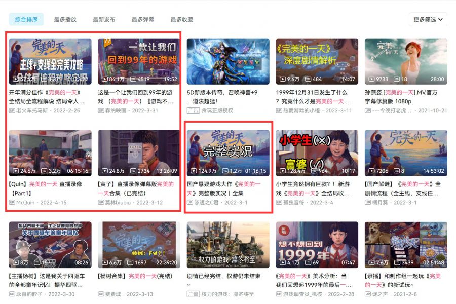 再比如去年,作为国产买断制游戏相对萧条的年份,国产独立游戏里也有《暖雪》《大多数》《完美的一天》这些叫好又耐播的游戏,在以B站为首的长视频平台里,也都能看到游戏不错的宣发与传播力度。