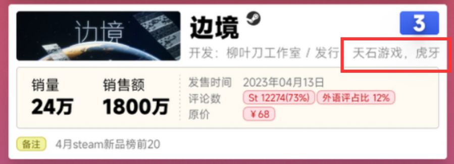 话题性不足,当下买断制游戏的整体销量却还不错,这主要得益于雷霆,天石,B站,心动,甚至是直播平台虎牙等大的发行商的介入,它们作为大发行商,为很多游戏创造了不同于视频赛道的曝光路径,尤其是心动、B站与虎牙这类平台类发行商,他们可以依靠展会、网站平台的各种曝光页面去推游戏,使游戏不需要太高的宣发费用就能达到一定的宣传效果。