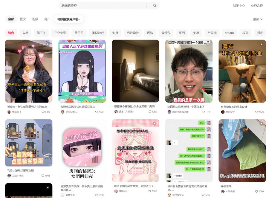 当然,放眼全市场,小体量的好评佳作并不少,真正吸引笔者注意力的,其实是该系列的用户画像——今年初,点触科技CEO潘文飞曾在采访中透露过,《房间的秘密》的核心用户主要是20岁上下到30岁之间的女性玩家。而据笔者观察,在小红书、微博这类女性用户占比极高的社交平台上,该系列也确实有着相当高的热度,大量女性玩家聚集在一起讨论着游戏的剧情、攻略等内容。