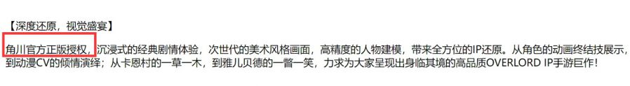 《纳萨力克之王》的官方版权说明,游戏是由角川官方来授权