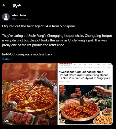而近日在开发者博客文章中,他们附上了一张鸭血火锅的图片,而火锅是一种传统的中国美食,许多玩家认为这意味着24 号特工可能是中国人。